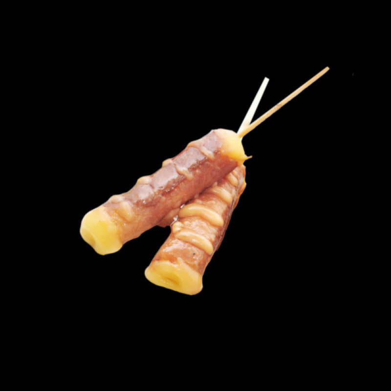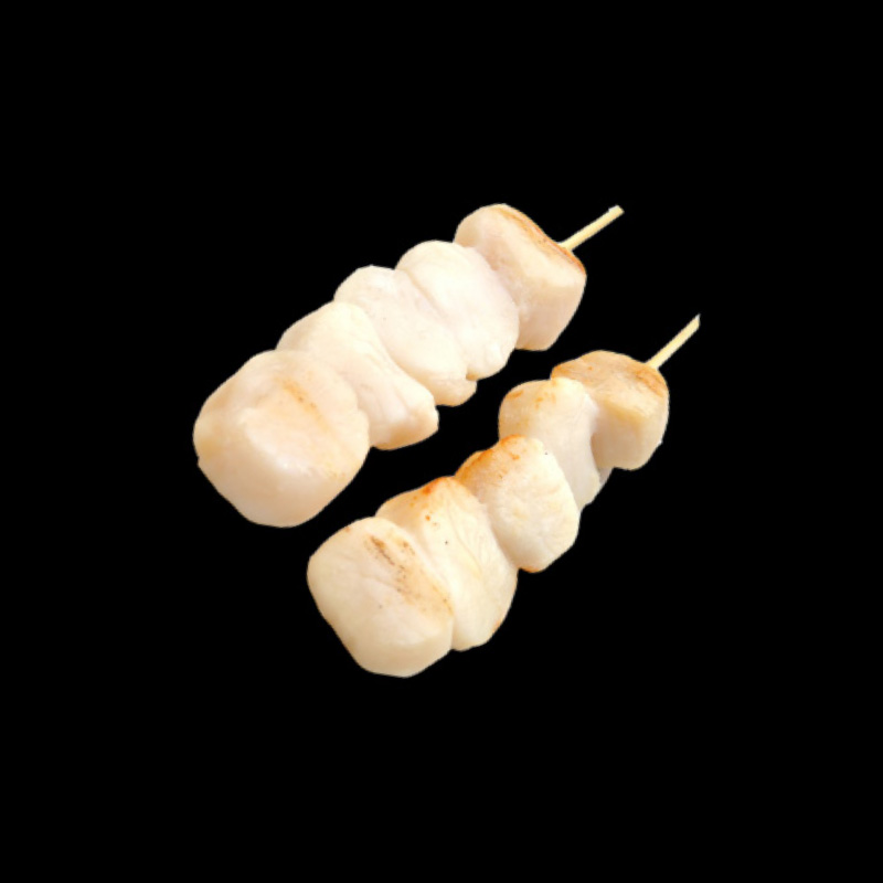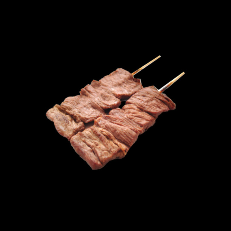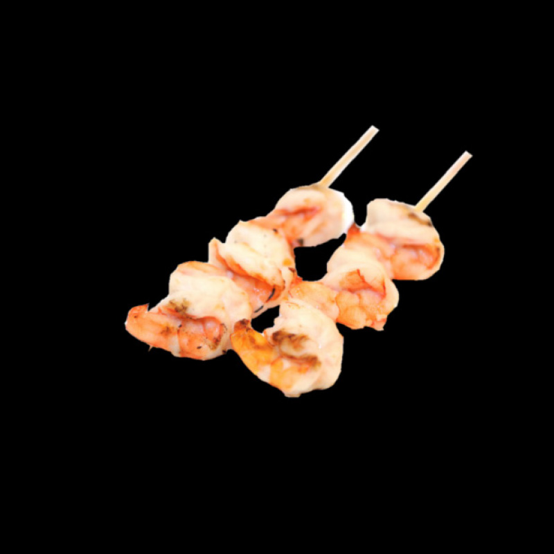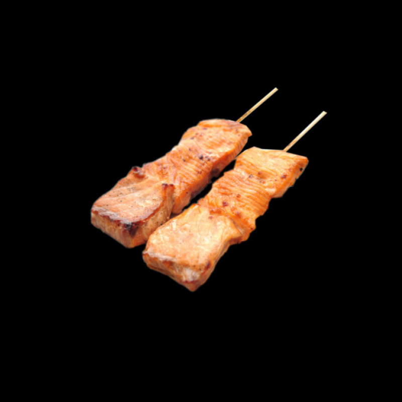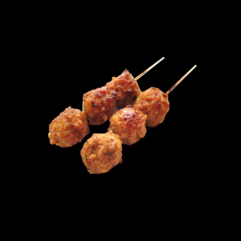 5 brochettes : 1 boeuf au fromage, 1 boulette de poulet