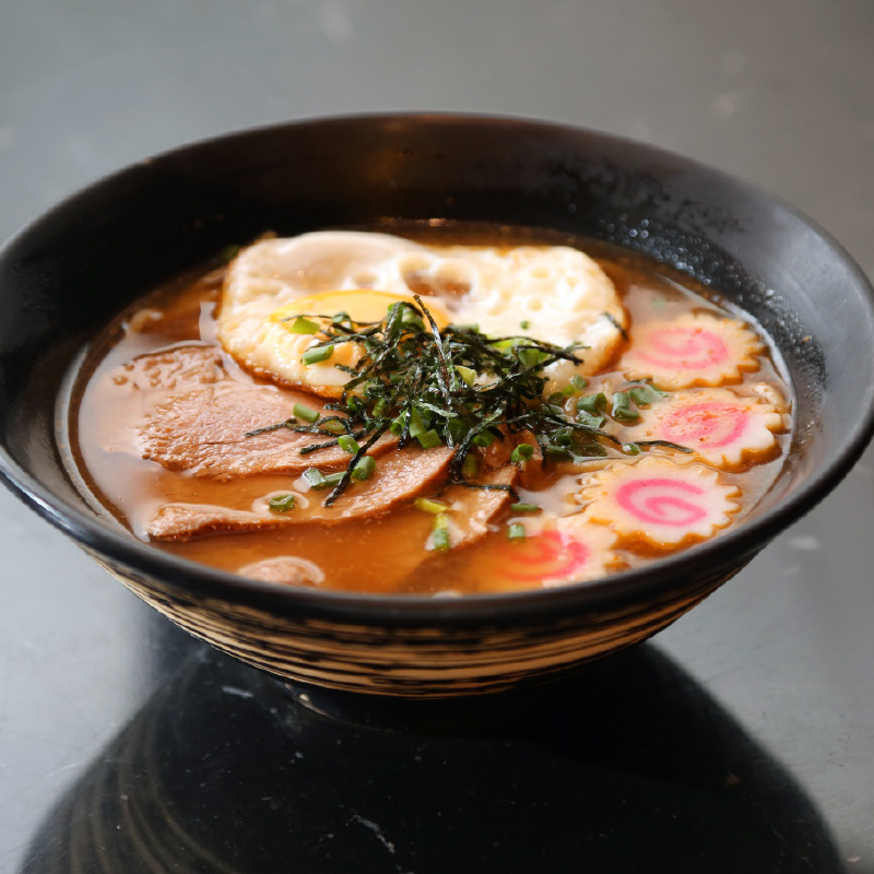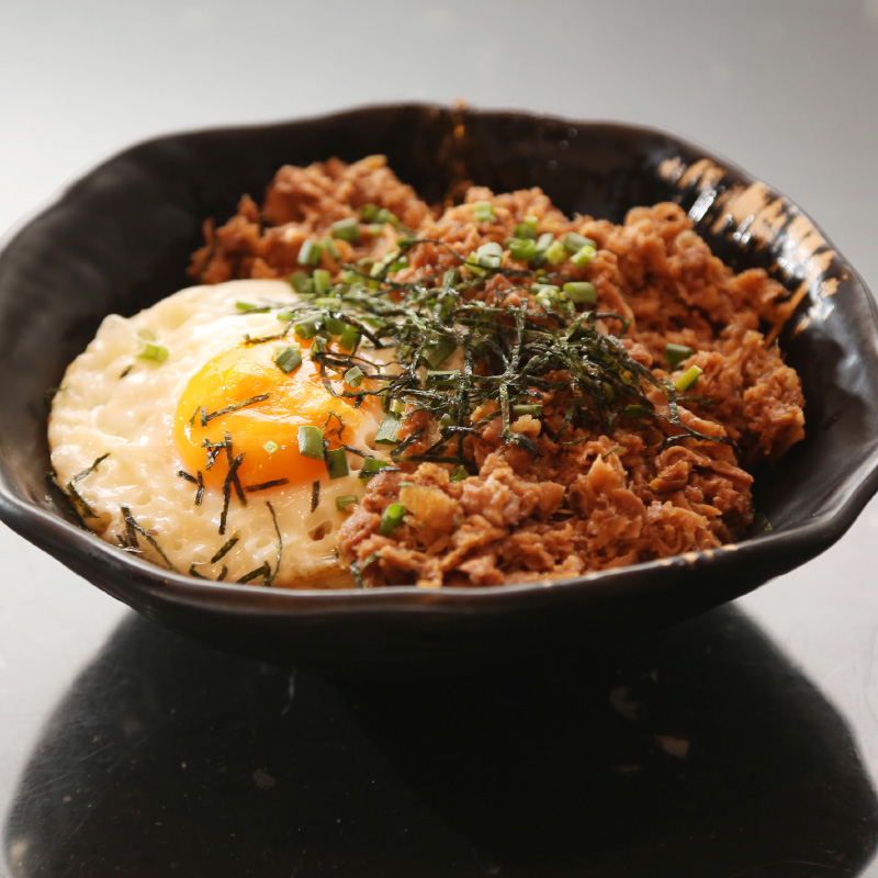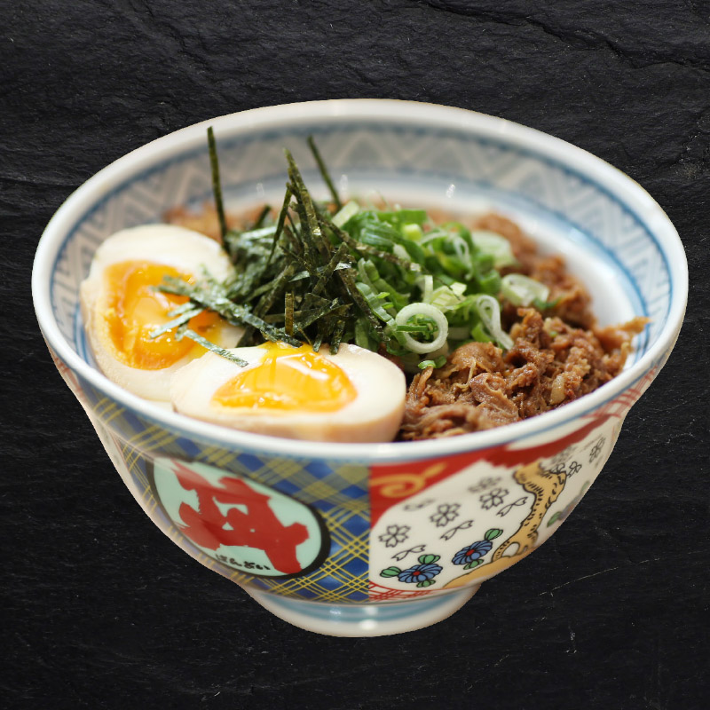 Boeuf marinée servi avec du riz blanc et avec un œuf mollet