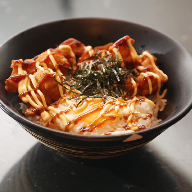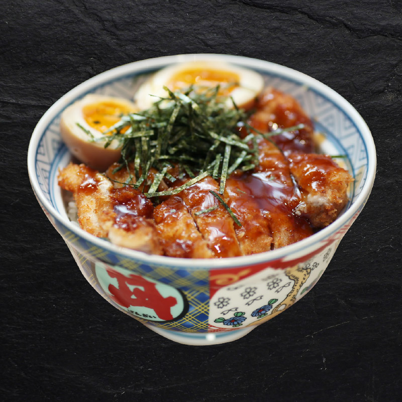 Porc pané japonais. Tendre et croustillant, servi avec riz blanc,avec un oeuf mollet et de la sauce tonkatsu.